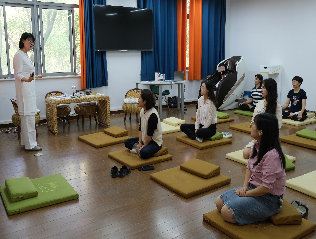 928日、1026日、1116日及1228日,为了提升广大教师的健康、情绪及能量状态,来自健康学院的教学名师陈翠翠在天华楼264正念减压中心带领大家连续开展四期体验式正念工作坊。正念创始人乔恩·卡巴金博士将正念定义为“有意识地,不加评判地,留心当下此刻所升起的觉察力用以培养自我了解,智慧与慈爱。”作为当下最“出圈”的疗愈方式之一,正念被广泛用于心理学和身心健康领域的实践中。活动受场地限制,每次限额15名教师参加,教师工作部副部长李艳艳主持。